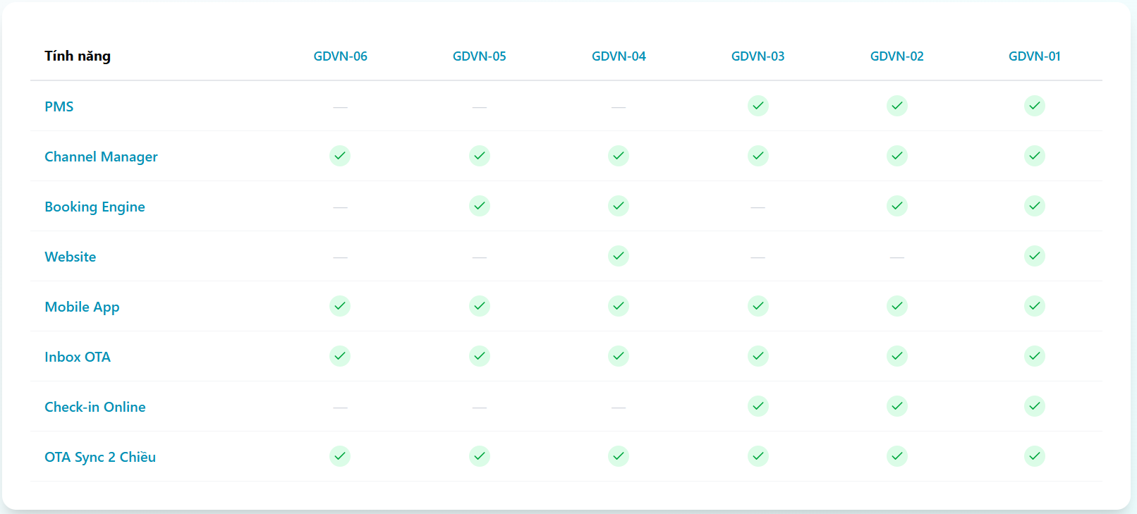 Bao gồm: PMS, Channel Manager, Check-in Online, App di động.